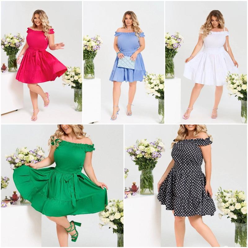#1081 Платье Ткань: коттон Цвет: малина, белый, голубой, зеленый, черный в белый горошек Размер: 42-44(1), 46-48(2) 50-52(3), 54-56(4)58-60(5)