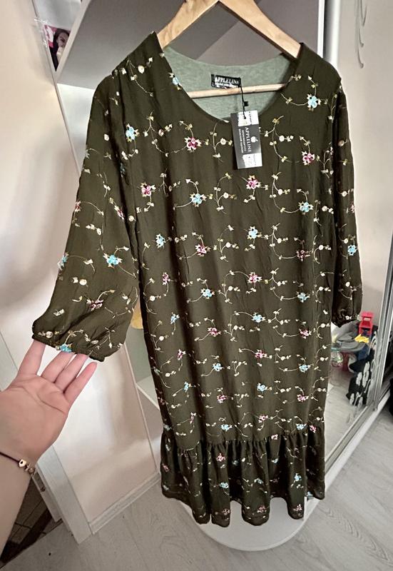 Шифоновое платье с машинной вышивкой, с трикотажным подкладом, новое, по набору 60 укр размера, но по замерам ПОГ 60см, ПОТ и ПОС 65 см