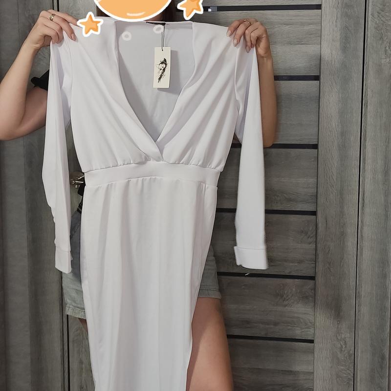Белое платье с разрезом
