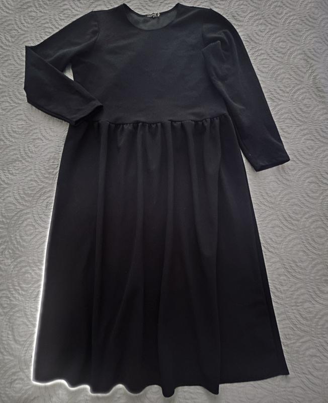 Отличное базовое черное платье как на выход, так и для повседневной жизни, в зависимости от выбора аксессуаров! Из дайвинга, очень хорошо тянется, подойдет и под немного более крупные параметры, чем по изделию. Длина 110 см, ПОГ и ПОТ 50 см, ПОС 70 см, по борке 56 укр размера.