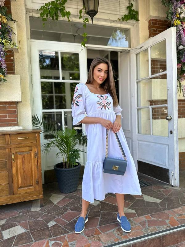 Стильное женское белое вышитое платье, платье-вышиванка, платье с вышивкой на лето-женскую...