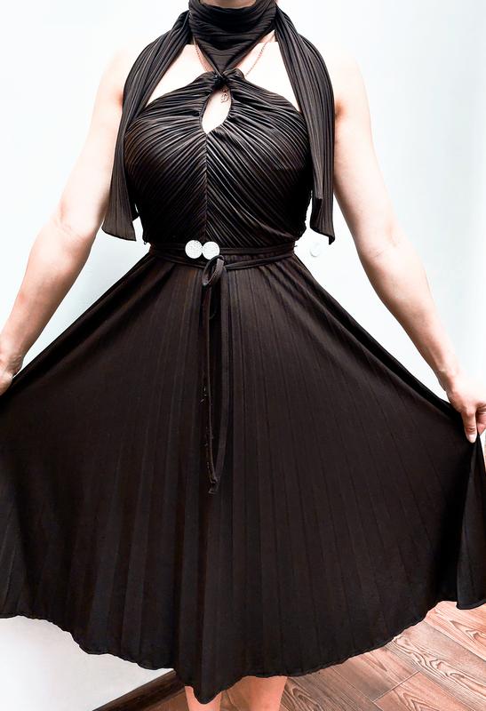 Новое женское темно-коричневое вечернее платье-миди складками с глубоким декольте с пришитым шарфом от бренда Monsoon, платье завязывается на шее, спинка открытая и с молнией. СТОК Размер М Замеры: длина платья от груди 96 см, полуобхват груди 38 см, полуобхват талии 35 см. Материал платья: 95% -полиэстер, 5% эластан Материал подкладки: 100%- полиэстер 👗Платье: ✨️ Качественная ✨️Стильная ✨️Низкая цена 🎁При заказе от 3-х вещей🛍, вы получаете от меня бесплатную 📦доставку Новой Поштой😉