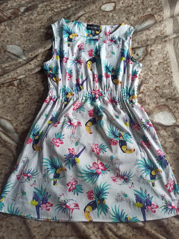 Лёгкий сарафан с карманами на молниях. На поясе резинка, не тугая. Состояние новой вещи. Без нюансов.