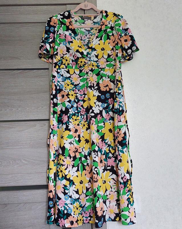 Черное кэжуал платье-миди в яркий цветочный принт papaya petite(12-14 размер)