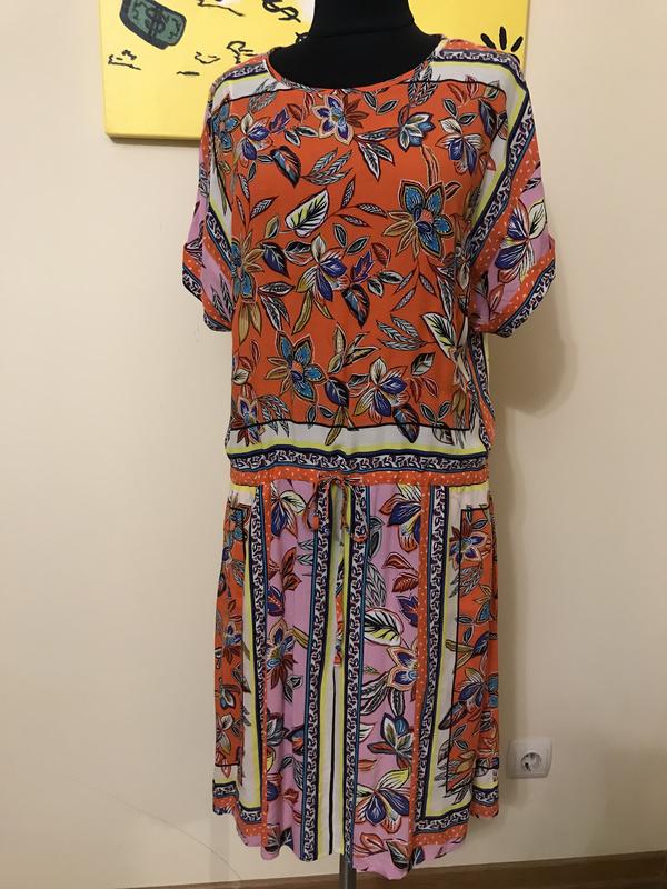 Платье из нежной узорной ткани сделано в Германии раз XL(42) длина 104; по груди 53; талия 50 на шнурке затягивается; бедра 64; подпишитесь и смотрите свои обновления. Предлагаю Кожаные сумки, ремни, обувь, а также одежду из натуральных материалов известных брендов