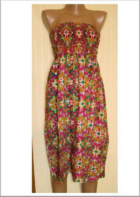 Платье сарафан Peacocks Вискоза. Бюст на резинке. Размер 42 (XS, UK8). Ширина по груди 32-48 см. Ширина резинки на лифе 18 см. Длина юбки от лифа до низа 71 см. Цена 450 грн.