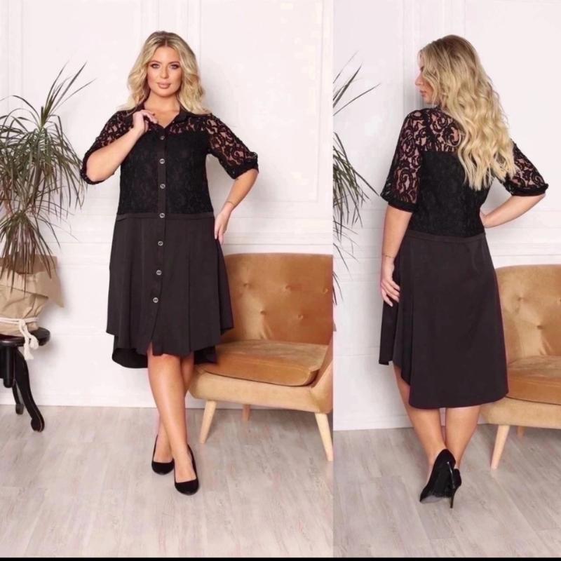 Модель 731 сукня новая Цена 380 грн. Размеры: 48-50; 52-54; 60-62 Ткань: евро костюмка, гипюр х/б Платье свободного кроя, по бокам есть карманы, пуговицы все рабочие. Параметры: Размер 48-50 Длина: 104/114 см Длина рукава от плеча: 45 см Ширина манжета: 28 см Объем груди: 106 см. Размер 52-54 Длина: 104/114 см Длина рукава от плеча: 45 см Ширина манжета: 29 см Объем груди: 112 см. Размер 56-58 Длина: 104/114 см Длина рукава от плеча: 45 см Ширина манжета: 30 см Объем груди: 118 см. Размер 60-62 Длина: 106/115 см Длина рукава от плеча: 45 см Ширина манжета: 34 см Объем груди: 126 см код1805(диа)