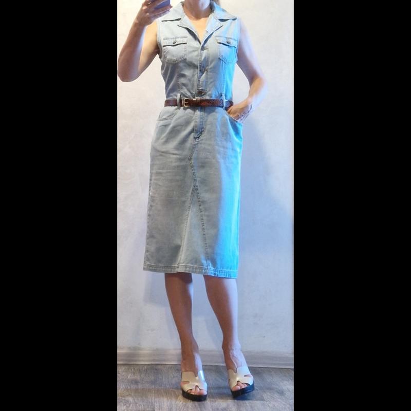 Джинсовое платье в размере М, без пояска, в идеальном состоянии. Одетая на рост 165см размер М. Пог 47 Пот 39 По стегон 49, вдягнута на стегна 96. Длина 109. Шлепки тоже в продаже. Новые, очень удобные, размер 37, идут на 38, на стопу 24,5см. (1530грн.)