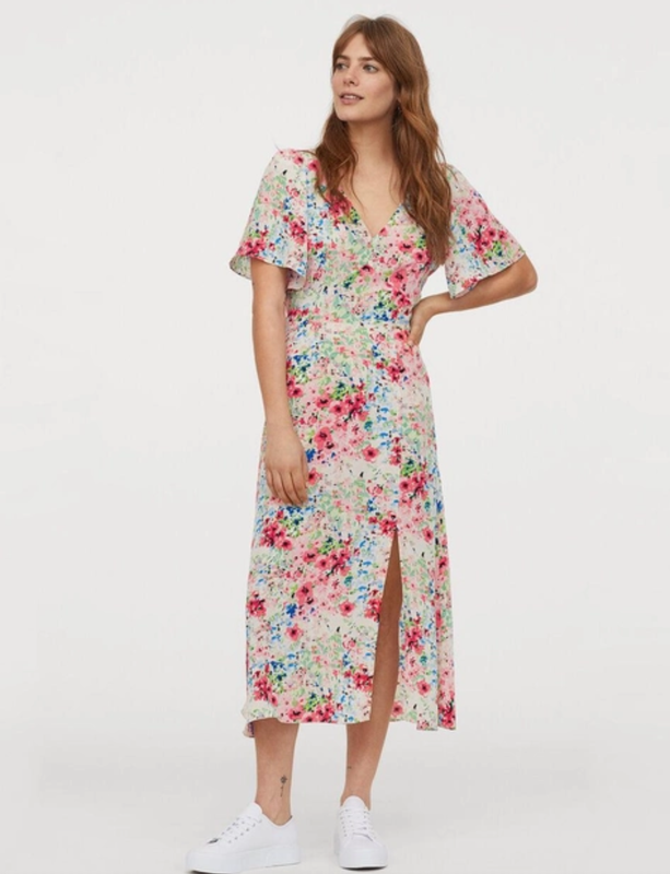 Легкое платье цветочный принт H&M,100% вискоза, без подкладки.В идеальном состоянии,размерМ-L.