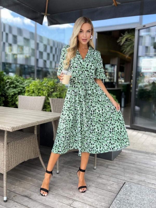 Очень красивое платье ❤️ Получается невероятно женственный образ 👗Аккуратное декольте ♡ Талия на резинке, пояс в комплекте ДЕКОЛЬТЕ НА ЗАПАХ 😍 ● Размер 46-48 полномерный на грудь 104-110 см талия на резинке до 102 см Длина 118 см ● Ткань: шелковый софт, легкий, не парит, не просвечивает ● Цвет: оливка Очень удобное декольте, подходит для кормления