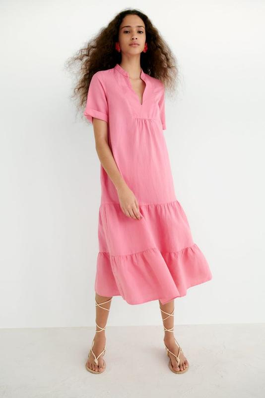 Платье из смесового льна и хлопка. Воротник с вырезом «замочная сквольная», короткие рукава с отворотами. Размер XS Состав: 52% лен, 48% коттон