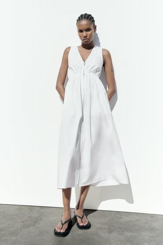 100% БАВОВНАЯ Платье средней длины. V-образный вырез. Без рукавов. Резинка на талии. Металлическая застежка-молния спереди. Платье в наличии в размере L может быть на М, если у вас пышная грудь.