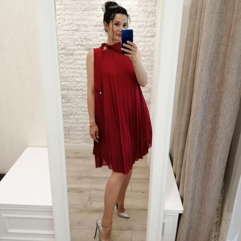 Платье плиссе цвета бордо Просто невероятная. На шее завязывается Размер S-M Стан - нова