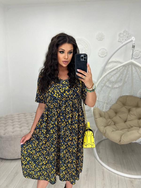 345 Сукня Мод. #2101 Размеры: 50/52, 54/56 Ткань: штапель Замеры: Длина:107/109см 50/52 до 112 см грудь 54/56 до 122 см груди