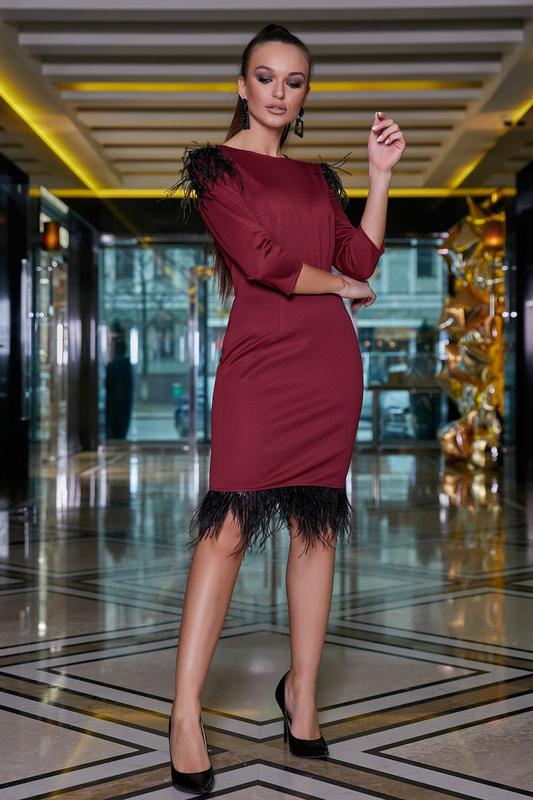 Представляем гламурное женское платье от производителя ST-Seventeen. Контрастная модель сочетает роскошные цвета - черный и марсала. Лента с перьями по окату рукава и по низу изделия - не просто украшения, это возможность проявить желанную внутреннюю уверенность и чувство стиля. Под платье восхитительно подойдут черные матовые туфли и вечерний макияж.