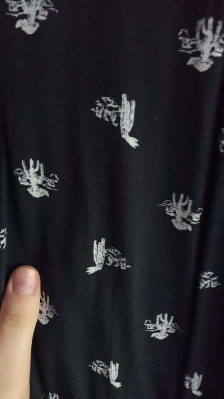 Бренд: & Other Stories Розмір: 42 Напівобхват: талії - 40 см Плечей - 50 Грудей - 55 Стегон - 60 Довжина усього плаття - 92 см Рукава - 64 см Колір: синій з білим принтом (кактуси) Застібка: "молнія" збоку і гудзик на спині, також гудзики на рукавах Матеріал: 100% віскоза Стан: хороший