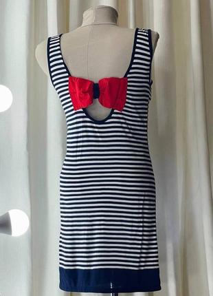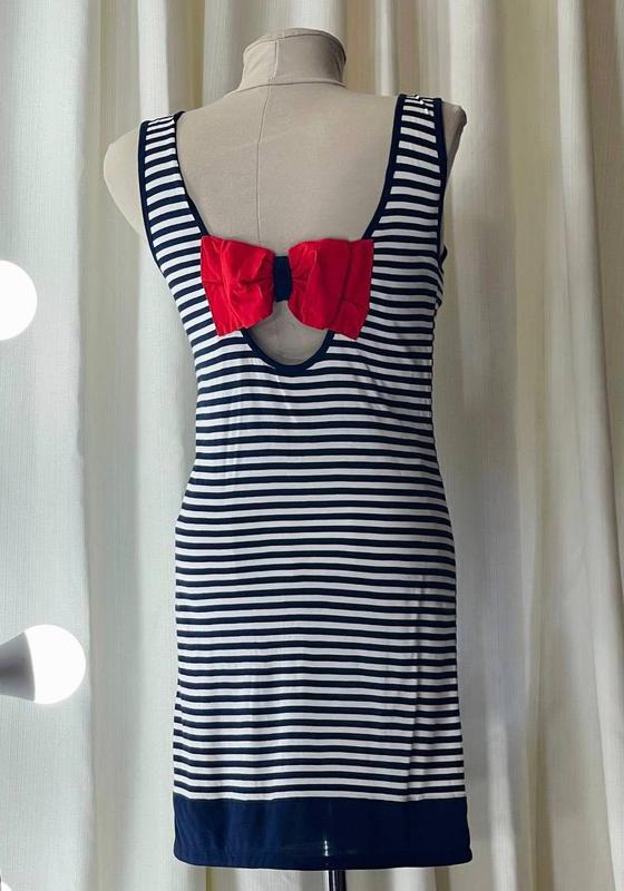 Платье из тонкого трикотажа в сине-белую полоску с красным бантом спины PRIMARK🛍❤️🔥😍😍😍 Размер - UK 8-10/ EUR 36-38/ S-M/ 44-46 . Состав : 50% вискоза, 50% полиэстр . Производство Турция . Платье короткое , прямого силуэта в тонкую поперечную полоску сине-белого цвета и широкой синей полосой внизу. Круглый окат горловины. Вырез спины украшен красным плотным бантом из поплина . Хорошо тянется . Дополнительные замеры : полная длина 80 см, ширина плеч 36 см, полуобхват груди 42 см ( полный обхват 84 см) и потянется до 100 см, полуобхват талии 40 см ( полный обхват 80 см) и потчнется до 90 см, полуобхват бедер 44 см ( полный обхват 88 см) и потянется до 100 см.