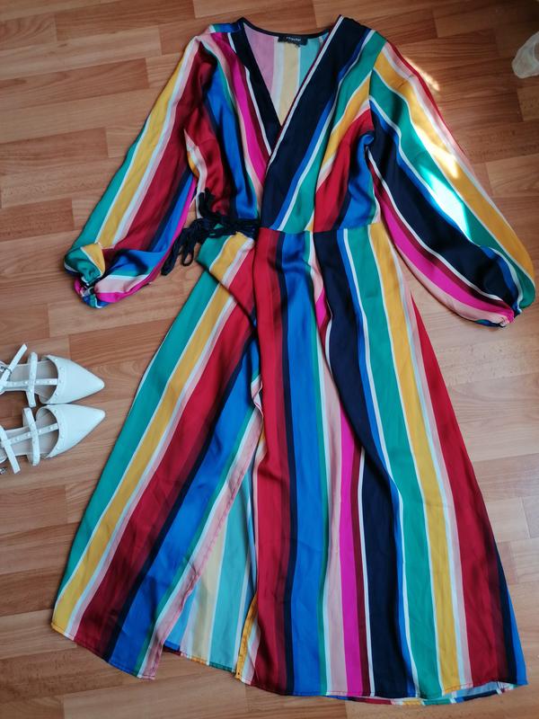 🌹смугаста атласна сукня міді на запах 🌹полосатое, яркое миди платье