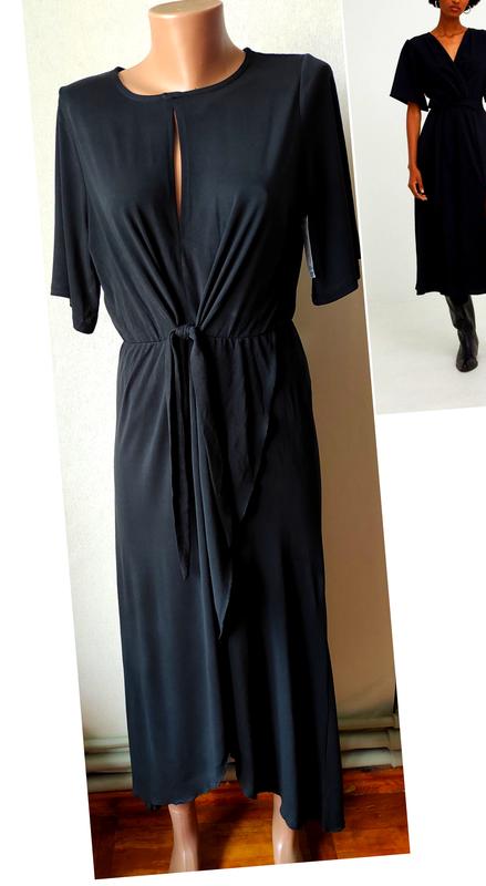 Чорна сукня розмір вказаний S можна на М дуже приємний до тіла матеріал. актуальний крій В залежності з чим ви її поєднаєте можна як на урочистість так і в повсякденному житті..
