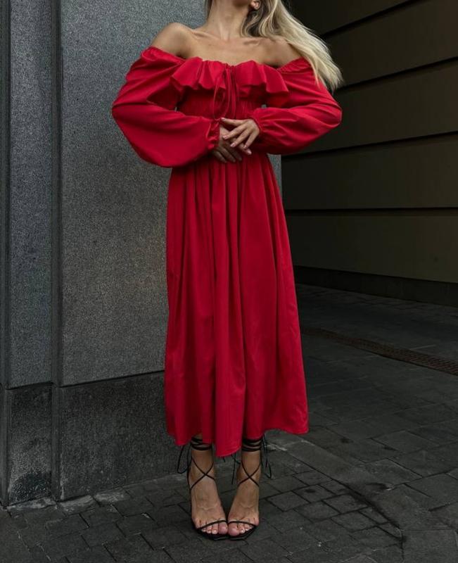 Платье миди с рукавами🔥 Тканина: софт Цвета: красный, черный, розовый, масло Размеры: S, M, L Невероятное красивое удлиненное платье на все события жизни❣️ Легкая приятная ткань, добавляет комфорта в жаркие дни (не светится). Йде як на фото. В груди на резинке, от талии идет свободное.