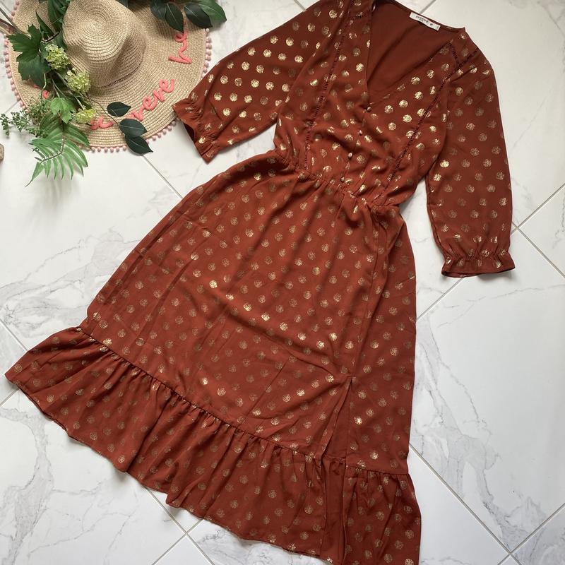 Платье в принт меди состояние идеальное, плотная ткань, имеет подклад р л -длина 116, рук 42 -нОг 50 -нОт 39-50 рез. -нОб свободно 60 ФОТО НА ТИЛИ НЕМАЕТ