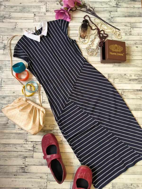 Платье миди с воротничком в полоску вискоза