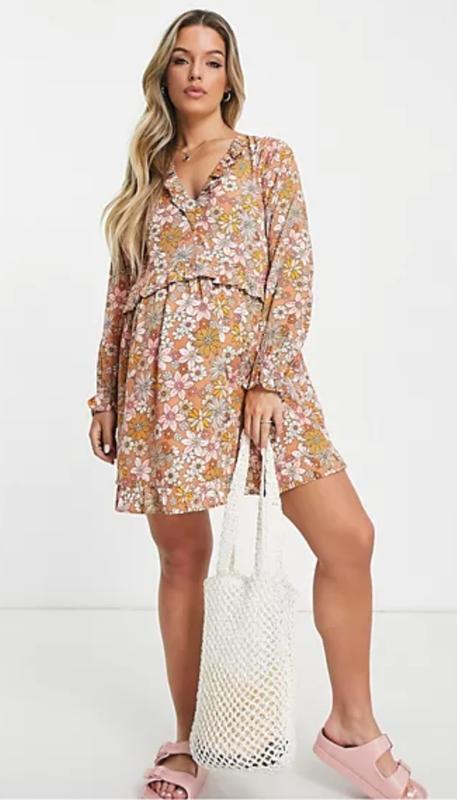 Ориентируйтесь по замерам. Длина 87 см, длина до рюши 40 см, ДР от горловины 74 см, ПОГ 61 см, ПОТ 60 си, ПОБ 77 см, ПО низу 91 см.