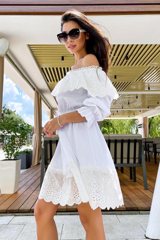 Платье мини придаст твоему образу нежности и утонченности. В платье есть подкладка из батиста. Нежное кружево идет по верху и по низу платья. Рукав ¾.