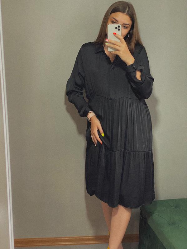 Сукня Joi, штучний атласний шовк, . Стан ідеальний Розмір M-L Заміри: Груди 50 Талія 46 Стегна 52 Довжина рукава 61 Довжина 96 .
