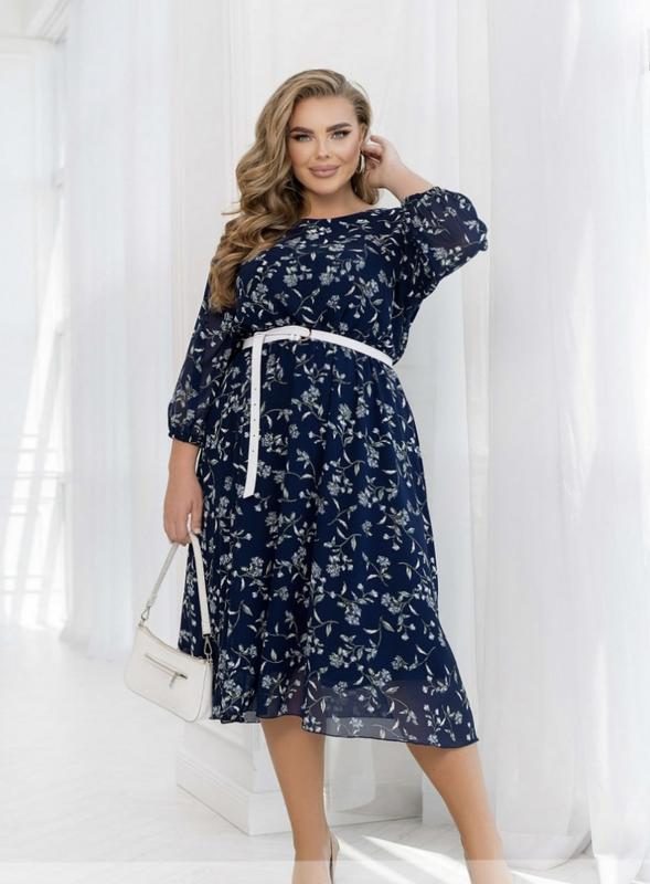 МАТЕРИАЛ: шифон, трикотажная подкладка РАСТЯЖНОСТЬ: отсутствие растяжимости Цвет: кремовый, желтый, синий, зеленый, голубой, сиреневый, синий-розовый, черный -розовый Платье состоит из двух слоев ткани, где верхний слой является полупрозрачным шифоном, а нижний слой мягкий и приятный на ощупь. Рукава платья длиной 3/4 не имеют подкладки, что обеспечивает ее легкость и воздушность. На запястьях рукавов вшиты резинки, что добавляет платья объема и элегантности. Талия отрезная с вертикальными вытачками, которые подчеркивают женственность фигуры и придают платья дополнительный орнамент. А обрамить талию можно текстильным пояском, который входит в комплект Ориентировочные замеры готового изделия: 46-48 р-р: длина платья 119см, длина рукава от плечевого шва 46см, обхват рукава 38см, ОГ - 100/104см, ОТ -72/110см, OC -154см. 50-52 р-р: длина платья 120см, длина рукава от плечевого шва 47см, обхват рукава 40см, ОГ - 108/112см, ОТ -80/118см, OC -162см. 54-56 р-р: длина платья 121см, длина рукава от плечевого шва 48см, обхват рукава 42см, ОГ - 116/120см, ОТ -88/126см, OC -170см. 58-60 р-р: длина платья 122см, длина рукава от плечевого шва 49см, обхват рукава 44см, ОГ - 124/128см, ОТ -96/134см, OC-178см. 62-64 р-р: длина платья 123см, длина рукава от плечевого шва 50см, обхват рукава 46см, ОГ - 132/136см, ОТ -104/142см, OC-186см. 66-68 р-р: длина платья 124см, длина рукава от плечевого шва 51см, обхват рукава 48см, ОГ - 140/144см, ОТ -112/150см, OC -194см. РЕКОМЕНДАЦИИ ПО УХОДУ: ручная стирка при температуре не более 30 градусов. ❗Цены могут отличаться, потому что курс стремительно растет 😔 Благодареннее за понимание 💛💙 🔹Оплата на счет ФОП 🔹Нова пошта, Укрпошта 🔹Обмен и возврат С радостью ответь на ваши вопросы, дам подобрать размер🌷 2448