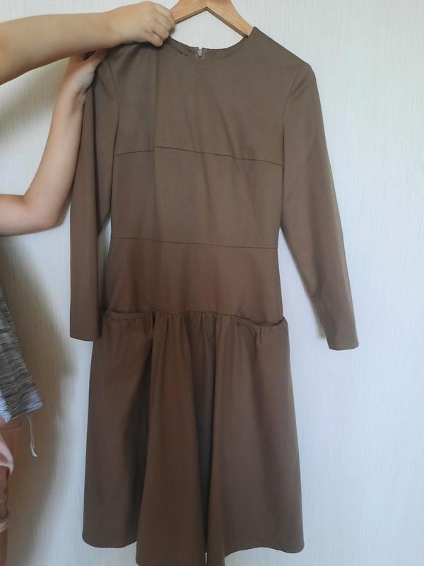 Стильное платье осеннее. 44-46 р. MUST-HAVE. БАВОВНА. Наделось несколько раз, как новое. Цвет - темный беж. Талия- 75см, грудь -80см, длина-114см. Спина застегивается на скрытую молнию