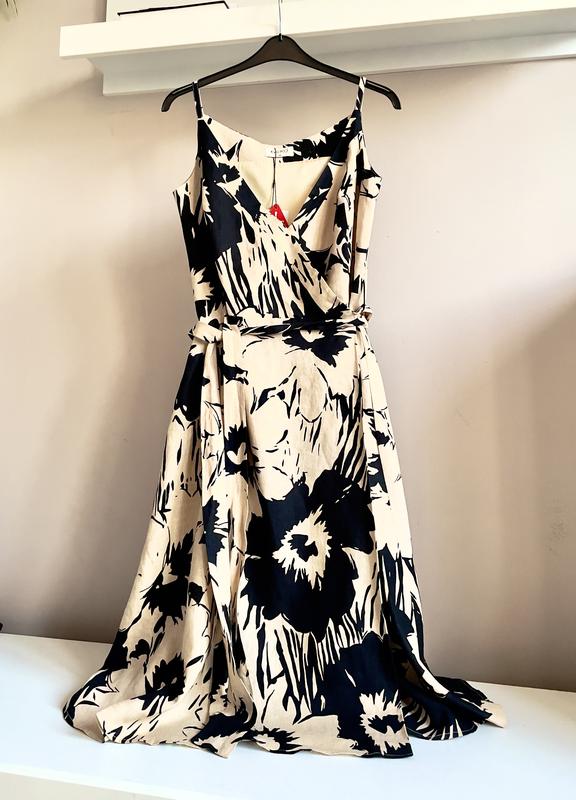 Красивое льняное платье на запах,стильное и эффектное, отменного качества и кроя.Замеры смотрите на фото