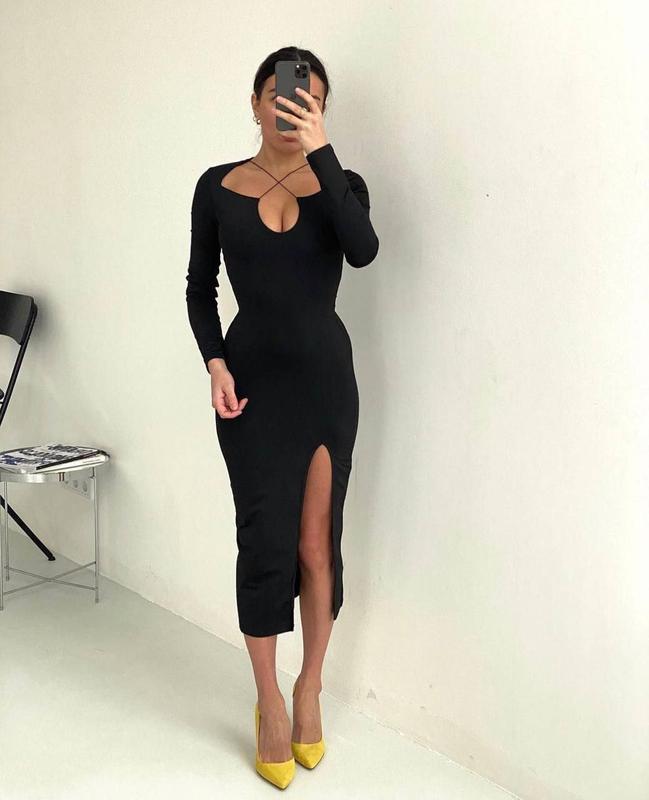 Платье, которое подчеркнет все достоинства Вашей фигуры! Кокетлевый вырез на ножке и обольстительный вырез на груди ♥️ Мод 9057/53 Размеры : 42-44, 46-48 Ткань : креп-дайвинг Цвет: черный Цена: 750 грн только по полной оплате ✅
