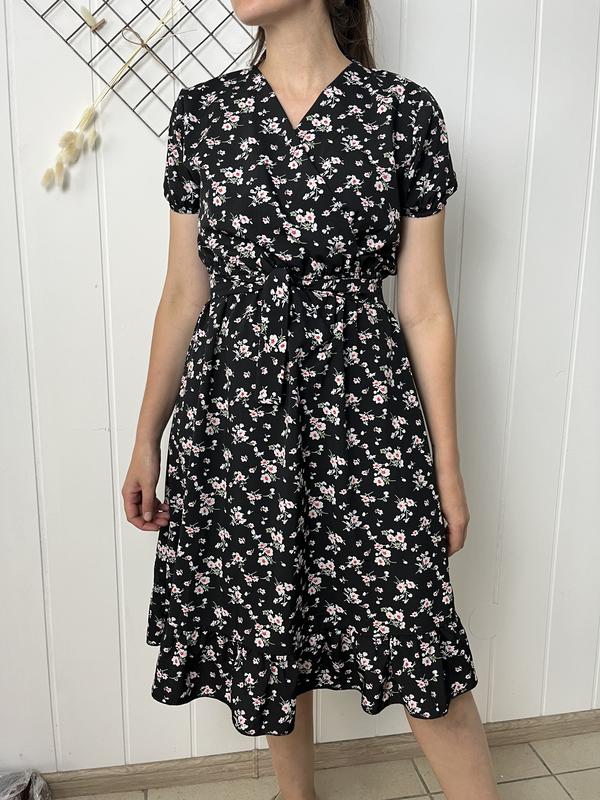 Легкое платье-миди из супер софта Длина 108 Плечи 40 Рукав 19 Груди 50 Талия резинка 37 тянется до 47 Бедра свободные Есть пасок