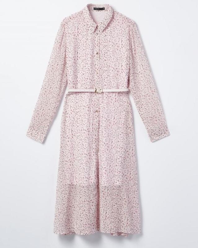 Очень нежный цвет.на подкладке.пояс в комплекте.Размер 38-М.но может подойти и на Л.крупномерит.