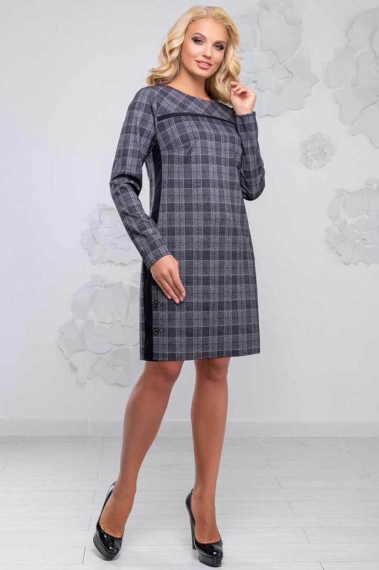 Покупка платьев с ассортиментом интернет-магазина ST-SEVENTEEN становится приятным и выгодным занятием. Наши лучшие дизайнеры предлагают вниманию девушек с пышными формами элегантную и стильную модель платья полуприлегающего фасона. Она выгодно подчеркивает все достоинства фигуры и выглядит оригинально благодаря трендовой черно-серой клетке, дополненной вставками по боковому шву и кантом на полочке. Декоративные детали выполнены в черном цвете, что визуально делает объемы меньше. Платье застегивается с помощью шлицы в боковом шве. Для пошива изделия была использована качественная, износостойкая и хорошо сохраняющая тепло костюмная ткань. Представленная модель имеет аккуратный круглый вырез, вытачки по линии груди и отрезную кокетку на полочке. Оригинальности платью в клетку придают декоративные пуговицы и карман в боковом шве. Дешевые платья оптом от интернет-магазина ST-SEVENTEEN отлично впишутся в образ в городском, молодежном или официально-деловом стиле.