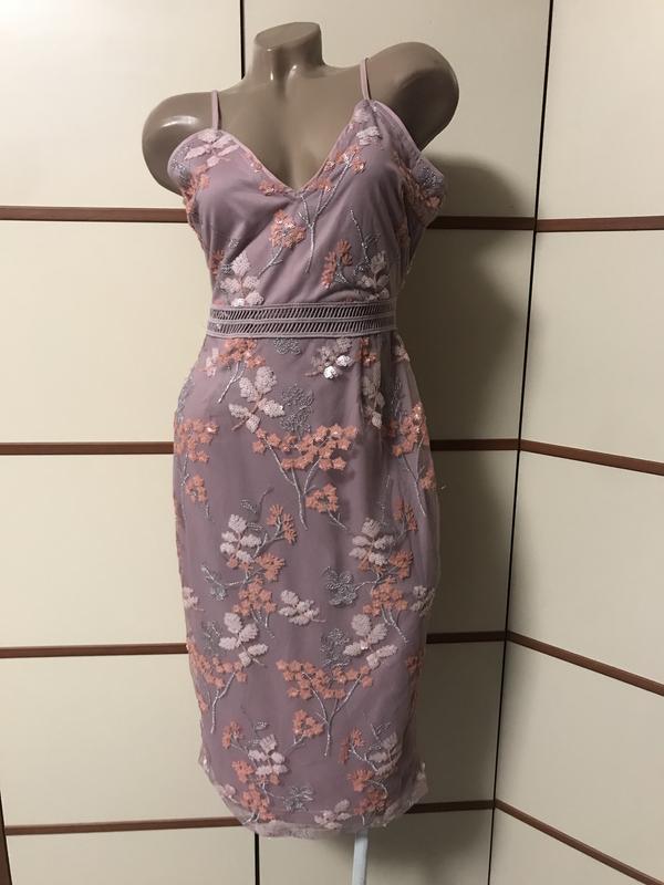 Необычайно красивое платье, размер М(указанный 12)длина 110см (брызги регулируются)пог 45см,пот 35см,поб 49см,позади замок, тянется.