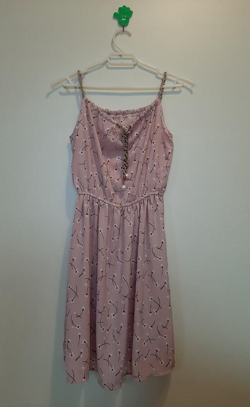 Легкое милое летнее платье отлично подойдет на жаркую погоду 🌞, в идеальном состоянии, как новое. Тканина - легенький софт. ПОГ - 46 см, ПОТ - максимально растягивается на резинке до 41 см. Длина без шлеек 74 см.