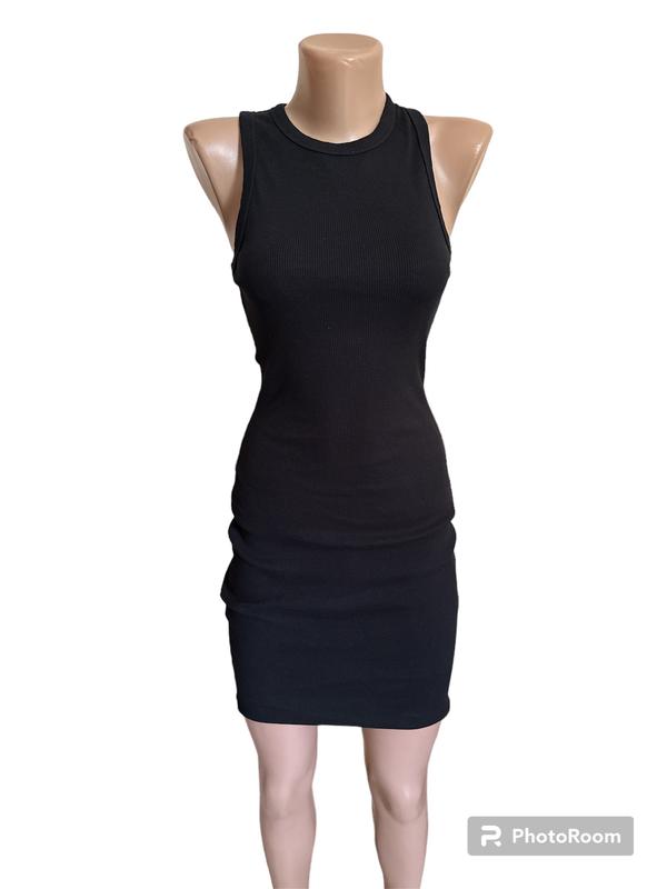 У рубчик. Все бирки срезаны. По плечам - 24,5 см, пог -32 см, Пот - 27 см, по стегнам - 36 см, довжина - 89 см. Тягнеться. Может подойти на небольшую М.