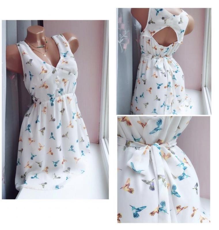 Ну просто невероятной красоты платье с птичками. Очень нежное и легкое. строшни новой вещи. НЕ просвечивается размер С. 42-44 длина 85 см. обхват груди 88-92 см, талия 33-42 см тянется