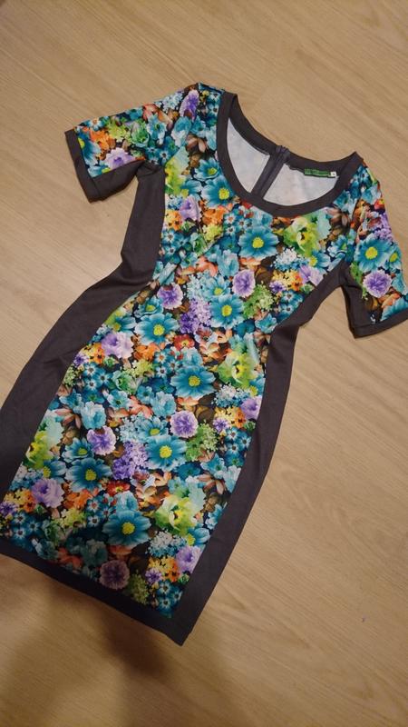 Яркое платье в цветочный принт, в украинском стиле. Можно как аналог вышиванка. Длина по колено. Размер S. Производитель Весна, украинская фабрика известная.