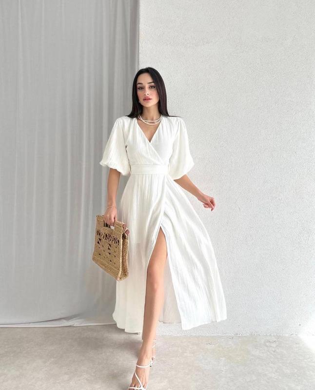 🤍Сукня на запах ✅Размер: 42-44, 46-48 ✅Цвет: голубой, белый, бежевый, малина ✅Тканина: льон жатий ✅Цена: 750 грн