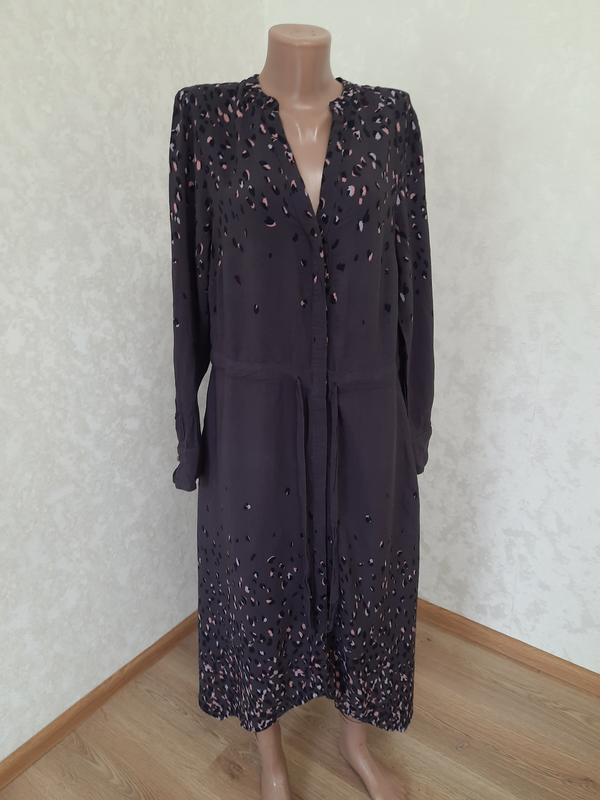 Отличное платье с актуальной асимметрией по низу. По пояску на кулісці.Є кармани. На рукавах и спереди красивые пуговицы. Замеры: ПП 41 ПГ 57 ПТ 49 ПБ 68 Низ 99 Длина 133 до самого длинного места Рукав 63