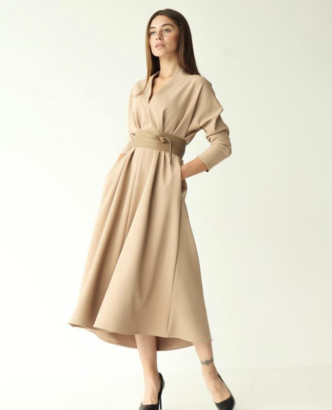 Стильное и изящное итальянское платье для любого события Цвет светлый беж (на последнем фото реал) Пояс в комплекті