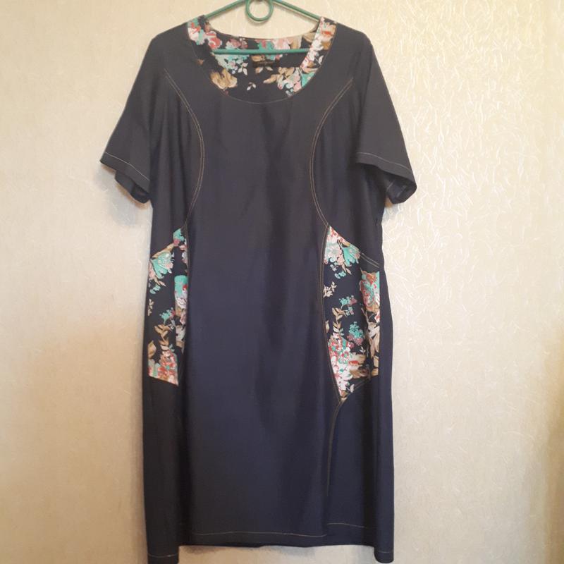 Ткань легкий джинс. Ткань тянется. Производство Турция. Длина по линии позвоночника 97 см. Пог 55 см. Поб 60 см. Полуобхват по низу 66 см.