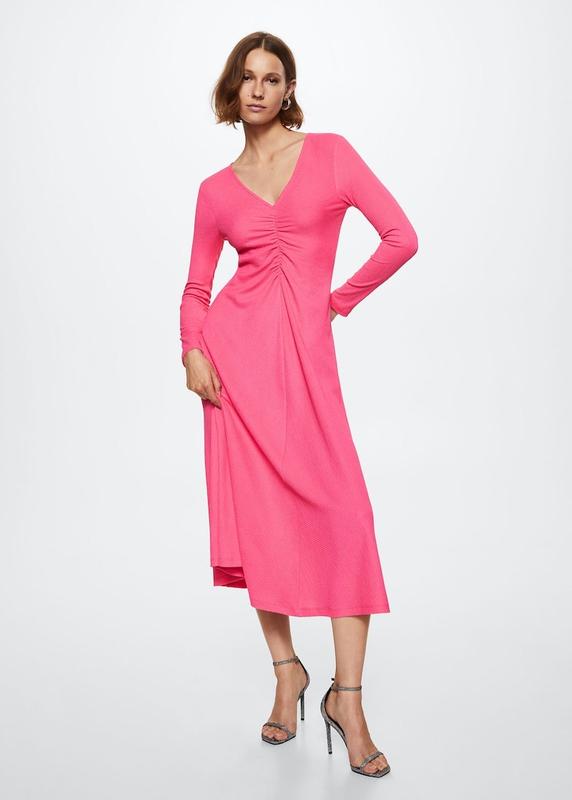 Струящаяся ткань. Фактурная выделка. Фасон "колокол". Дизайн миди. Присборенная деталь. V-образный вырез горловины. Длинные рукава. Размер xs Длина 118 см. Пог 37 см. Пот 32см. Поб до 58 см. свободно Плечи 36-38 см Ткань немного тянется