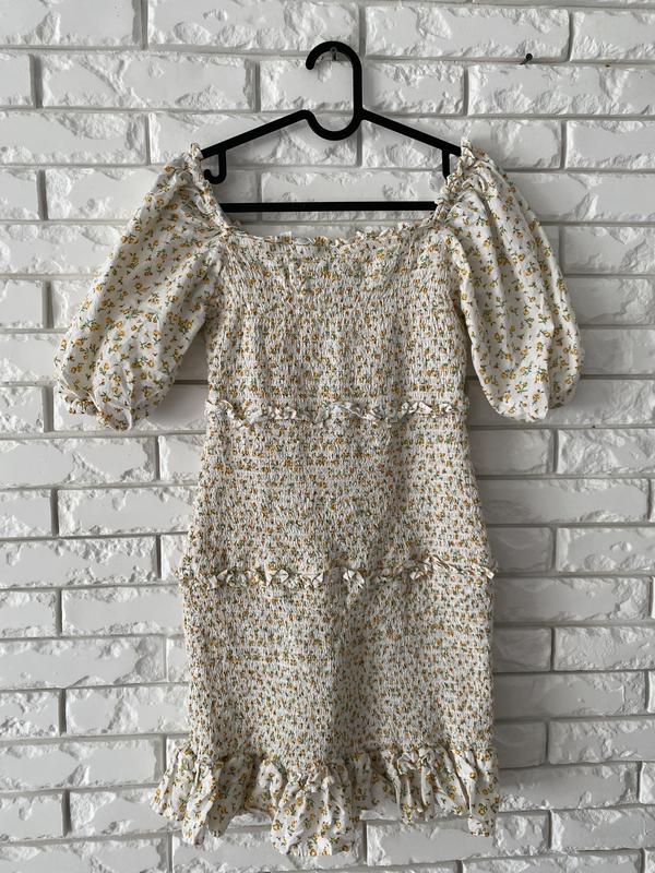 Красивое платье по фигуре резинка коттоновая принт цветы 8-10 с-м Длина 80 Полуобхват груди 33 плюс резинка тянется Талии 31 плюс Стегон 35 плюс Низ 39 плюс Рюши Котон