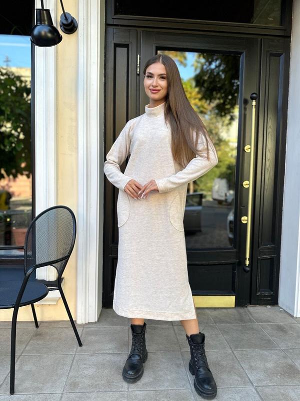 Все цвета в наличии!!! Платье из теплой ангоры с вырезом для пальчика на манжете, идеально согреет вас в холодную погоду 💐💐💐 Сукня 🩵💛 Модель -370 Ткань-антора рубчик(Турция) Цвета-графит, оливка, светлый беж Размер-универсальный (42-46) Замеры: Грудь – талия – бедра до 105 см Длина по спинке-119 см Длина рукава от горла 72 см