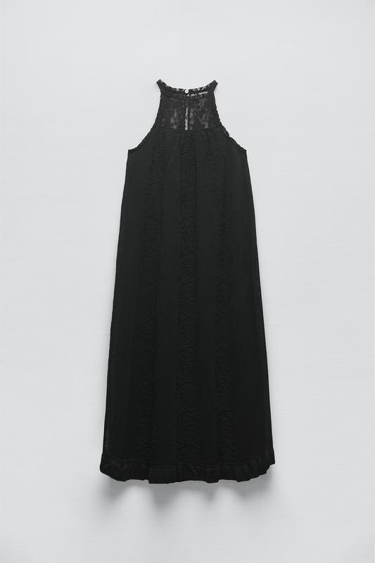 Трикотажное платье средней длины со вставками Платье с вырезом. Декоративные вставки из полупрозрачной ткани. Оборка внизу. Разрез с застежкой на пуговицы сзади. ОВНИТЕЛЬНЫЕ 63% полиэстер 37% бавовна СЛИЗОВА ОБОЛОНКА 100% бавовна
