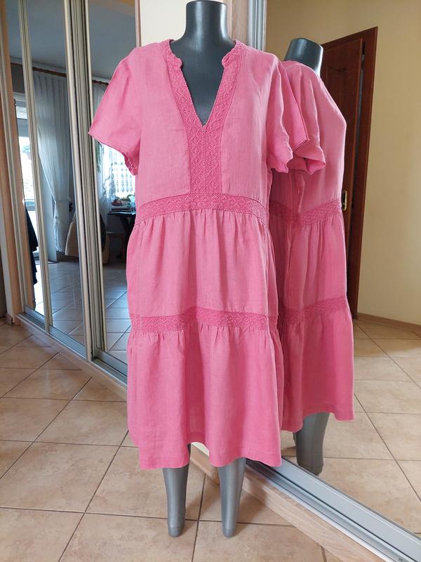 💯% льняное ярусное с карманами платье 👗